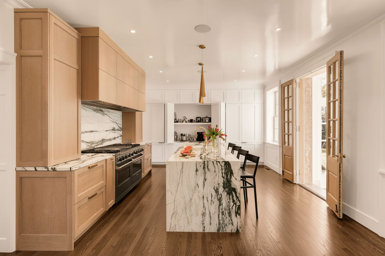 "Erica worked with us on two larger projects and is now doing a wine cellar and a kitchen for our son. That’s how confident we are in her technical abilities and how comfortable we are working with her. Her hallmarks are subtle, elegant solutions to everyday living. Nothing that feels forced or overworked. Always livable. If you can imagine a perfectly prepared dinner where guests are so completely satisfied they linger for hours, then you'll understand what great architecture will do for living at home. Erica creates exactly that."